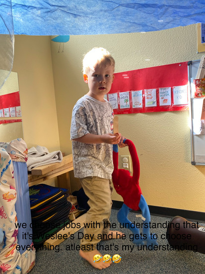 Today was Weslee's Rivendell Birthday (3) and the theme was his favorite color: blue. Rivendell went all-in for blue. He's not a halfway sort of kind of guy, but an all-in, 100% kind of guy. Weslee likes animals. Even if they are not blue. He always checks on Yurtle and the fish, and is the first to see the cats. He likes Spiderman. A lot! He'll often choose a 'toy-of-the-day' and stick with it. Today it was the red frog with blue feet. He was happy to see the puzzle of himself, and worked on it several times. We are lucky to have him as a friend, and we look forward to watching him grow and develop this next year, and to hear what he has to say.