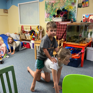 What I have to say is that there were moments of great cooperation and fun play (giving each other 'cat bus' rides...passing-the-slime...putting on shows...free play) and then moments when it was difficult (clean up time)