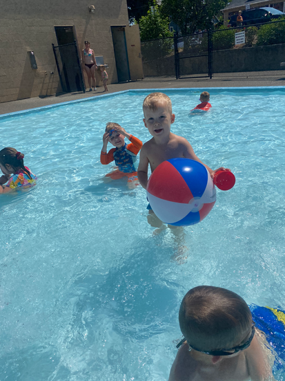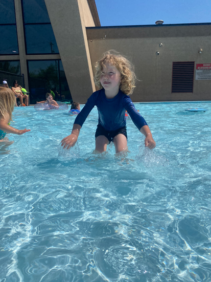 It was also a successful first day at the wading pool. (And we got out just in time as there was a 'poop alert', and the whole pool had to be cleared for 'at least a half hour', until they could test the water. It wasn't us!!!)