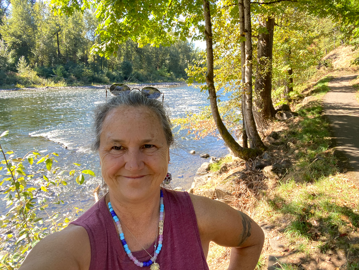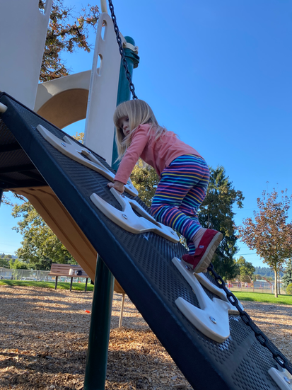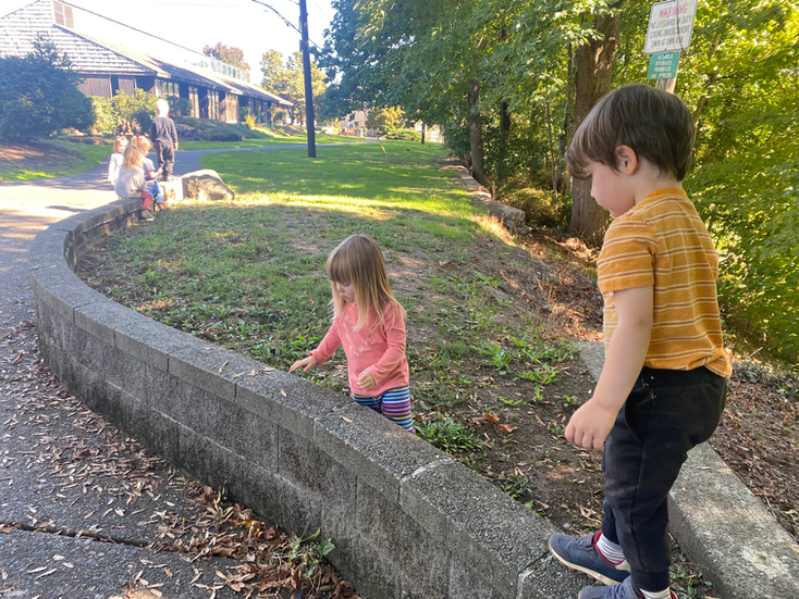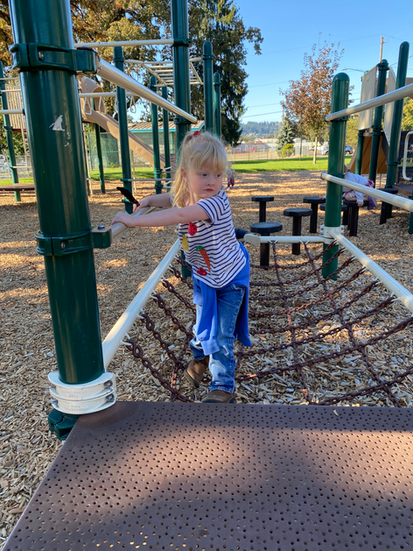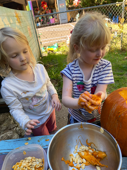 I'm sure none of you are surprised that today was an Adventure Day. It was simply too gorgeous for it not to be. We took the #32 bus to Maxwell Patterson Park, played at the playground there, walked over to the Clackamas river, enjoyed a picnic, and made our way back to school for rest time. Wonderful scary decorations to look at, trees at their best, and the river which simply nourishes the soul.
