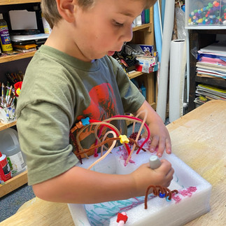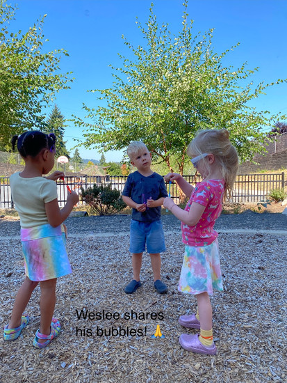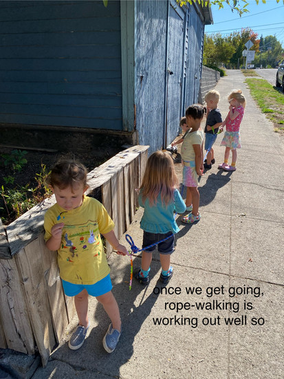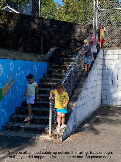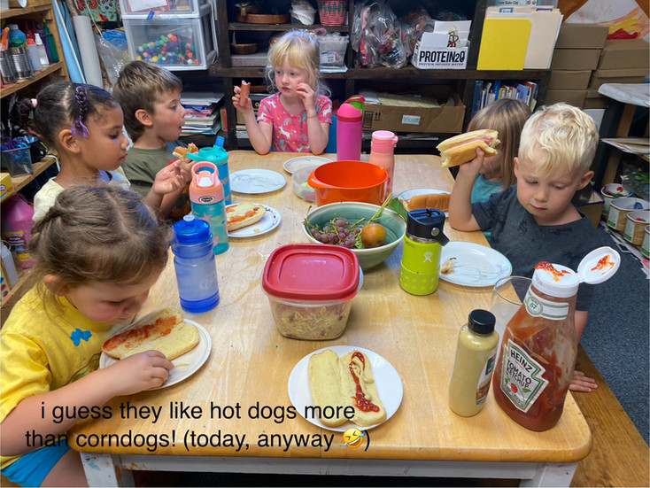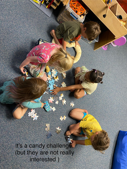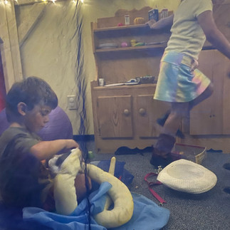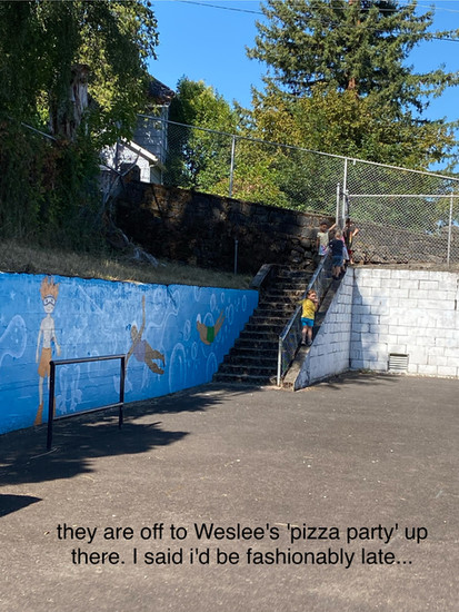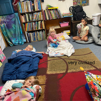 it's nice seeing Weslee leading play with all the kids. Today he had them all enjoying a fancy pizza-camping-picnic party both in the loft and at LaTourette