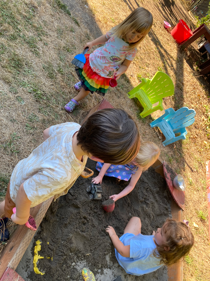 Hazel (4): once the very youngest, now the oldest (on Tuesdays). Usually fearless and independent, today she didn't want to go outside, but did it anyway. That's brave. She helped her friends put on their shoes, and can be counted on at clean-up time, and is usually the first to start a game of 'family'.