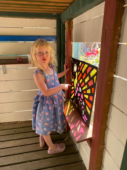 Honey (3): two-skinned knees today, but she keeps on going. Honey always comes in with a smile, and pretty much keeps it on all day. Lover of art and dress-up, she is also in the 'family game'.